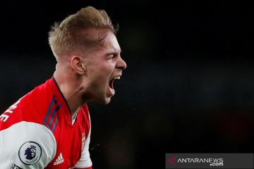 Pesepak bola Arsenal Emile Smith Rowe melakukan selebrasi setelah mencetak gol ke gawang West Ham United dalam laga lanjutan Liga Inggris, di Stadion Emirates Stadium, London, Inggris, Rabu (15/12/2021). Arsenal berhasil mengalahkan West Ham United 2-0. ANTARA FOTO/Reuters-Andrew Couldridge/hp.