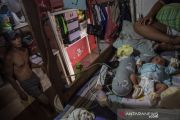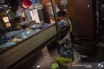 Warga menunggu banjir surut di Pondok Pinang, Kebayoran Lama, Jakarta Selatan, Jumat (17/12/2021). Banjir sejak Kamis (16/12/2021) tengah malam tersebut disebabkan Kali Pesanggrahan yang ada di sekitar lokasi meluap. ANTARA FOTO/Sigid Kurniawan/rwa.