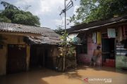 Warga melintasi banjir yang menggenangi permukiman di Pondok Pinang, Kebayoran Lama, Jakarta Selatan, Jumat (17/12/2021). Banjir sejak Kamis (16/12/2021) tengah malam tersebut disebabkan Kali Pesanggrahan yang ada di sekitar lokasi meluap. ANTARA FOTO/Sigid Kurniawan/rwa