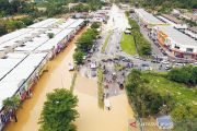 Pemandangan dari udara menunjukkan jalan yang terputus oleh air banjir setelah hujan deras, dalam tangkapan layar ini diambil dari rekaman drone di distrik Hulu Langat, negara bagian Selangor, Malaysia (19/12/2021). ANTARA FOTO/SHAHRUL AZMIR via REUTERS/aww.
