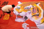 Seorang pelukis membuat lukisan Tahun Baru Imlek bertema macan di Bentong, Negara Bagian Pahang, Malaysia, Minggu (26/12/2021. Kelompok etnis Tionghoa setempat menyelenggarakan acara untuk menyambut Tahun Baru Imlek mendatang, yang merupakan Tahun Macan, yang akan jatuh pada 1 Februari 2022. ANTARA FOTO/Xinhua/Chong Voon Chung/wsj.
