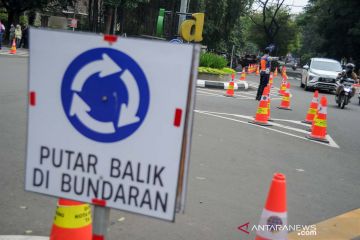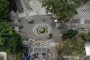 Foto udara rekayasa lalu lintas di Simpang Jalan Ciliwung, Bandung, Jawa Barat, Kamis (30/12/2021). Pemerintah Kota Bandung melakukan rekayasa lalu lintas di tiga simpang di Kota Bandung guna menertibkan lalu lintas serta mengurai kemacetan jelang Tahun Baru 2022. ANTARA FOTO/Raisan Al Farisi/aww.