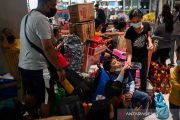 Orang-orang mengenakan masker pelindung dari COVID-19 menunggu untuk naik bus menuju provinsi, sehari sebelum Malam Tahun Baru di terminal bus Paranaque City, Metro Manila, Filipina, Kamis (30/12/2021). ANTARA FOTO/REUTERS/Lisa Marie David/rwa.