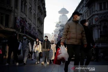 Orang-orang menggunakan masker pelindung saat berjalan di salah satu sudut kota Shanghai di tengah merebaknya kasus baru COVID-19 di China, Kamis (30/12/2021). China melaporkan 209 kasus baru COVID-19 dalam sehari, pada Senin (27/12/2021) terdiri dari 182 transmisi lokal dan sisanya impor dan mayoritas kasus berada di Provins Shaanxi di mana kota Xi'an berada, yang menjadi hotspot COVID-19 di China saat ini. ANTARA FOTO/REUTERS/Aly Song/wsj.