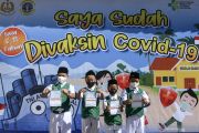 Sejumlah murid sekolah dasar menunjukkan kartu vaksin usai disuntik vaksin COVID-19 oleh prajurit Korps Wanita TNI AL (kowal) saat serbuan vaksin di Madrasah Ibtidaiyah Al-Wathoniyah di Rorotan, Jakarta, Senin (3/1/2022). Kegiatan vaksinasi tersebut digelar dalam rangka menyambut HUT ke-59 Kowal yang dirayakan setiap 5 Januari sekaligus mendukung program pemerintah terkait pembelajaran tatap muka (PTM). ANTARA FOTO/M Risyal Hidayat/hp.