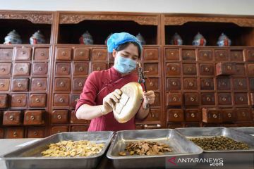 Seorang apoteker menimbang bahan-bahan untuk membuat ramuan pengobatan tradisional China (traditional Chinese medicine/TCM) di Rumah Sakit Pendidikan Pertama Universitas Pengobatan Tradisional China Tianjin di Tianjin, China utara, Rabu (12/1/2022). TCM telah diterapkan secara luas dalam pencegahan dan pengendalian COVID-19 di Tianjin, meningkatkan kapasitas kekebalan individu di bawah karantina medis. ANTARA FOTO/Xinhua/Li Ran/wsj.