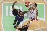 Pebasket Pelita Jaya Bakrie Muhamad Arighi (kiri) menggiring bola dihalangi pebasket Satria Muda Pertamina Antoni Erga (kanan) saat bertanding pada Indonesian Basketball League (IBL) 2022 di Hall Basket Gelora Bung Karno, Senayan, Jakarta, Sabtu (15/1/2022). Pelita Jaya Bakrie menang atas Satria Muda Pertamina dengan skor 69-65. ANTARA FOTO/Dhemas Reviyanto/hp.