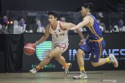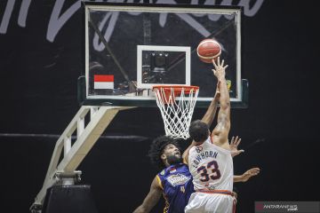 Pebasket Satria Muda Pertamina Arki Dikania Wisnu (tengah) menggiring bola dihalangi dua pebasket Pelita Jaya Bakrie saat bertanding pada Indonesian Basketball League (IBL) 2022, di Hall Basket Gelora Bung Karno, Senayan, Jakarta, Sabtu (15/1/2022). Pelita Jaya Bakrie menang atas Satria Muda Pertamina dengan skor 69-65. ANTARA FOTO/Dhemas Reviyanto/hp.