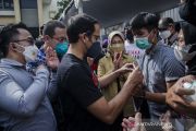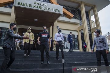 Menteri Pendidikan, Kebudayaan, Riset dan Teknologi Nadiem Makarim (ketiga kiri) didampingi Rektor Universitas Padjadjaran Rina Indiastuti (kedua kiri) berjalan untuk memberikan keterangan pers usai meninjau Festival Kampus Merdeka 3.0 di Universitas Padjajaran, Bandung, Jawa Barat, Senin (17/1/2022). Aksi yang bertepatan dengan kunjungan kerja Mendikbudristek Nadiem Makarim tersebut dilakukan untuk menyampaikan aspirasi masalah pendidikan secara langsung sehingga bisa memperbaiki dan memajukan pendidikan di Indonesia untuk ke depan. ANTARA FOTO/Novrian Arbi/rwa.