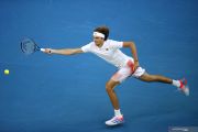 Petenis Jerman Alexander Zverev mengembalikan bola ke arah lawannya petenis Moldova Radu Albot dalam laga putaran ketiga Turnamen Tenis Australian Open, di Melbourne Park, Melbourne, Australia, Jumat (21/1/2022). Zverev berhasil mengalahkan Radu Albot straight set (6-3, 6-4, dan 6-4). ANTARA FOTO/Reuters-Asanka Brendon Ratnayake/hp.
