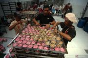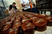 Pekerja menata dodol keranjang di rumah industri dodol keranjang, Tegal, Jawa Tengah, Sabtu (22/1/2022). Menurut produsen dua pekan terakhir permintaan dodol keranjang khas Imlek yang dijual ke sejumlah daerah diantaranya Solo, Bandung dan Semarang dengan harga Rp21 ribu - Rp25 ribu per kilogram tersebut meningkat hingga 100 persen. ANTARA FOTO/Oky Lukmansyah/foc.