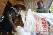 Petani menyiapkan pupuk bersubsidi untuk ditaburkan di area persawahan Indrapuri, Aceh Besar, Aceh, Sabtu (22/1/2022). Untuk menjaga kebutuhan petani, PT Pupuk Indonesia (Persero) saat ini memiliki stok pupuk bersubsidi secara nasional pada awal tahun 2022 sebesar 1,13 juta ton dengan rinciannya pupuk Urea sebesar 512 ribu ton, NPK 305 ribu ton, SP-36 103 ribu ton, ZA 135 ribu Ton dan Organik 80 ribu ton untuk disalurkan pada masa tanam awal 2022. ANTARA FOTO/Irwansyah Putra/wsj.