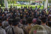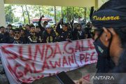 Massa yang tergabung dalam Padepokan Rongkad Jagat Galunggung melakukan unjuk rasa menuntut agar anggota Komisi III DPR RI dari PDI Perjuangan Arteria Dahlan mengundurkan diri dari jabatannya, di Kantor DPRD Kabupaten Tasikmalaya, Jawa Barat, Senin (24/1/2022). Mereka juga mendesak Polri agar memprosesnya secara hukum karena dinilai telah menyinggung etnis Sunda dalam pernyataannya soal kajati yang menggunakan Bahasa Sunda dalam rapat. ANTARA FOTO/Adeng Bustomi/rwa.