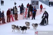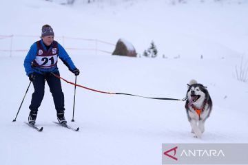 Seorang peserta berlomba dalam kejuaraan musim dingin sleddog (anjing penarik kereta luncur) Latvia 2022 dan Piala Dunia Federasi Internasional Olahraga Sleddog di Madona, Latvia, (23/1/2022). ANTARA FOTO/Xinhua/Janis Laizans/aww.