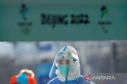 Petugas medis mengenakan alat pelindung diri berada media center Olimpiade Musim Dingin Beijing 2022, Beijing, China, Kamis (27/1/2022). Penyelenggaraan Olimpiade Musim Dingin Beijing yang rencananya dibuka 4 Februari mendatang ditengah merebaknya varian Omicron, pemerintah China menerapkan strategi "Dynamic Clearing" dimana kebijakan penanganan COVID-19 berpindah ke otoritas lokal. ANTARA FOTO/REUTERS/Fabrizio Bensch/rwa.