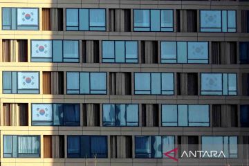 Bendera Korea Selatan tampak di tempat tinggal atlet atau "athlete's village" menjelang pembukaan Olimpiade Musim Dingin Beijing 2022 di Beijing, Beijing, China, Kamis (27/1/2022). Penyelenggaraan Olimpiade Musim Dingin Beijing yang rencananya dibuka 4 Februari mendatang ditengah merebaknya varian Omicron, pemerintah China menerapkan strategi "Dynamic Clearing" dimana kebijakan penanganan COVID-19 berpindah ke otoritas lokal. ANTARA FOTO/REUTERS/Fabrizio Bensch/rwa.