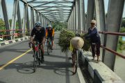 Peserta bersepeda saat mengikuti "Yogyakarta Ultra Cycling Challenge 2022" di Bantul, Yogyakarta, Sabtu (29/1/2022). Kegiatan yang diikuti ratusan pesepeda dari seluruh Indonesia tersebut menempuh jarak 200 kilometer dengan melintasi jalur kota dan pedesaan sehingga diharapkan dapat mendorong pemulihan ekonomi di Yogyakarta. ANTARA FOTO/Hendra Nurdiyansyah/wsj.