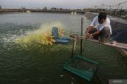 Pekerja memeriksa udang vaname berumur 50 hari di Binuangeun, Lebak, Banten, Sabtu (29/1/2022). Masyarakat setempat yang membudidayakan udang vaname tersebut mengatakan dalam sekali panen bisa menghasilkan sekitar 25 ton udang vaname dengan omzet keuntungan mencapai miliaran rupiah. ANTARA FOTO/Muhammad Bagus Khoirunas/wsj.