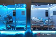 Jurnalis berada di kabin istirahat yang disiapkan di Media Center Olimpiade Musim Dingin Beijing 2022 di China, Sabtu (5/2/2022). Fasilitas 20 unit kabin istirahat yang dikembangkan oleh Keeson Technology Corp Tiongkok diperuntukkan bagi jurnalis untuk bisa tidur siang hingga satu jam hanya dengan pemindaian sederhana dari ponsel mereka. ANTARA FOTO/REUTERS/Aleksandra Szmigiel/rwa.