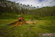 Pekerja mengoperasikan alat berat di dekat patok titik nol Ibu Kota Negara (IKN) Nusantara di Kecamatan Sepaku, Kabupaten Penajam Paser Utara, Kalimantan Timur, Minggu (6/2/2022). Titik nol itu merupakan satu referensi atau patokan untuk menghitung tingkat ketinggian bangunan di atas permukaan laut, Pemerintah pusat melalui Kasatgas Perencanaan Pembangunan Infrastruktur IKN PUPR Imam Santoso Ernawi menyampaikan pembangunan fisik IKN Nusantara akan dimulai pada awal Semester II 2022. ANTARA FOTO/Bayu Pratama S/wsj.
