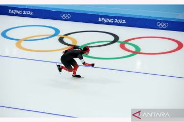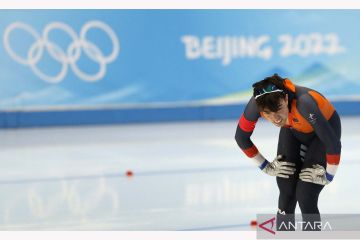 Atlet Patrick Roest mencetak rekor olimpiade saat beraksi pada cabor Speed Skating Putra 5000m Olimpiade Musim Dingin Beijing 2022 di National Speed Skating Oval, Beijing, China, Minggu (6/2/2022). ANTARA FOTO/REUTERS/Susana Vera/wsj.