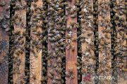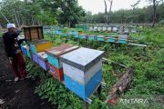 Pemilik lahan memeriksa lebah yang dibudidayakan di Rantau Karya, Geragai, Tanjungjabung Timur, Jambi, Selasa (8/2/2022). Desa Rantau Karya yang sebagian wilayahnya berbatasan langsung dengan hamparan perkebunan akasia (Acacia auriculiformis) milik salah satu perusahaan di sisi selatan merupakan daerah penghasil madu lebah Apis mellifera asal Jambi dengan produksi madu rata-rata tiga ton lebih per bulan. ANTARA FOTO/Wahdi Septiawan/rwa.