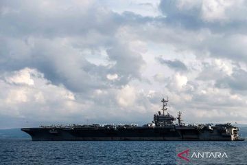 Kapal Induk USS Harry S. Truman (CVN-75) berlayar di perairan laut Adriatik, lepas pantai Kroasia, Senin (14/2/2022). Kapal induk kelas Nimitz ke-8 dari Angkatan Laut Amerika Serikat tersebut menggelar latihan militer di perairan Laut Adriatik pekan ini saat ketegangan antara AS dan Rusia semakin meningkat terkait Ukraina. ANTARA FOTO/REUTERS/Milan Sabic/wsj.