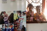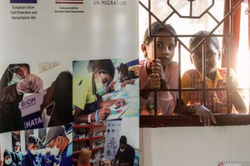 Dua anak pengungsi etnis Rohingya berdiri di jendela melihat temannya menjalani vaksinasi COVID-19 dosis kedua di tempat penampungan sementara BLK Desa Meunasah Mee Kandang, Muara Dua, Lhokseumawe, Aceh, Jumat (18/2/2022). Sebanyak 67 orang dari total 108 pengungsi Rohingya yang ditampung sejak 31 Desember 2021 dilaporkan telah melarikan diri dari BLK. ANTARA FOTO/Rahmad/foc.