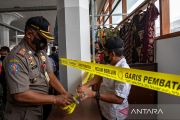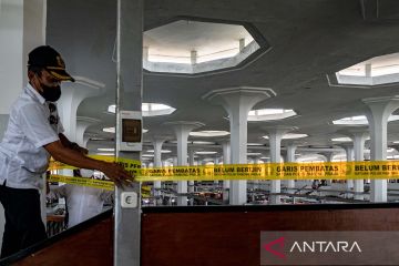Petugas Satpol PP Kota Semarang menyegel lapak pedagang yang kosong saat pendataan lapak di Pasar Johar, Semarang, Jawa Tengah, Senin (21/2/2022). Pemkot Semarang menyegel 109 lapak dari total 555 lapak pedagang yang akan disegel karena belum ditempati maupun belum registrasi Berita Acara Serah Terima (BAST), dengan tujuan agar para pedagang yang terdaftar segera memanfaatkan lapak untuk berjualan sesuai aturan Disperindag Kota Semarang pascarevitalisasi oleh Kementerian PUPR. ANTARA FOTO/Aji Styawan/aww.