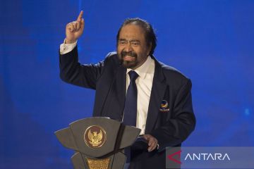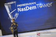Ketua Umum Partai Nasdem Surya Paloh menyampaikan pidato dalam peresmian gedung Nasdem Tower di Menteng, Jakarta, Selasa (22/2/2022). Selain sebagai kantor pusat Partai Nasdem, gedung setinggi 23 lantai dengan luas 30.000 meter persegi tersebut difasilitasi dengan ballroom, ruang siber dan digitalilasi, serta perpustakaan. ANTARA FOTO/Aditya Pradana Putra/aww.