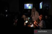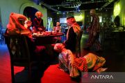 Orang-orang bersantap di restoran Shadows yang bertema horor, di Riyadh, Arab Saudi, dalam gambar yang diambil pada Kamis (17/2/2022). ANTARA FOTO/REUTERS/Ahmed Yosri/aww.