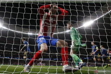 Pesepak bola Atletico Madrid Sime Vrsaljko terlihat kecewa setelah gagal mencetak gol ke gawang Manchester United yang dijaga penjaga gawang David De Gea dalam laga leg pertama babak 16 besar Liga Champions, di Stadion Wanda Metropolitano, Madrid, Spanyol, Rabu (23/2/2022). Atletico Madrid menahan imbang Manchester United dengan skor 1-1. ANTARA FOTO/Reuters--Juan Medina/hp.
