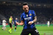Pesepak bola Inter Milan Lautaro Martinez melakukan selebrasi setelah mencetak gol ke gawang Salernitana dalam laga lanjutan Liga Italia, di Stadion San Siro, Milan, Italia, Jumat (4/3/2022). Inter mengalahkan Salernitana 5-0 dan Lautaro hat-trick membuat hat0trick dalam pertandingan ini. ANTARA FOTO/Reuters--Daniele Mascolo/hp.
