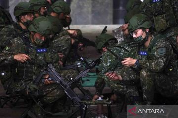 Sejumlah tentara cadangan berlatih menembak di Nanshipu, Taiwan, Sabtu (12/3/2022). Tentara cadangan tersebut dibentuk Taiwan untuk memperkuat pasukan militer jika peperangan melawan China benar-benar meletus. ANTARA FOTO/REUTERS/Ann Wang/wsj.
