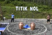 Pekerja menyelesaikan pekerjaan persiapan jelang seremoni ritual Kendi Nusantara di titik nol Ibu Kota Negara (IKN) Nusantara di Kecamatan Sepaku, Penajam Paser Utara, Kalimantan Timur, Minggu (13/3/2022). Presiden Joko Widodo akan menggelar seremoni ritual Kendi Nusantara dengan mengumpulkan 34 tanah dan air yang dibawa oleh 34 gubernur se-Indonesia di titik nol IKN Nusantara pada Senin (14/3/2022). ANTARA FOTO/Hafidz Mubarak A/hp.