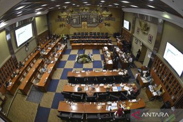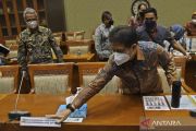 Suasana rapat kerja bersama Kementerian Kesehatan, Komite Penanganan COVID-19 dan Pemulihan Ekonomi Nasional (KPC PEN) dengan Komisi IX di Kompleks Parlemen, Senayan, Jakarta, Rabu (23/3/2022). Rapat tersebut membahas persiapan pemerintah dalam masa transisi pandemi menuju endemi COVID-19 sekaligus kebijakan pemerintah terkait vaksinasi sebagai upaya penanggulangan COVID-19. ANTARA FOTO/Aditya Pradana Putra/wsj.
