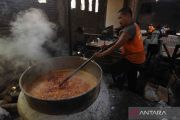 Pekerja mengaduk bahan saat produksi gula jawa di Slegrengan, Kalitengah, Wedi, Klaten, Jawa Tengah, Kamis (24/3/2022). Hasil produksi gula jawa itu dijual dari harga Rp12 ribu hingga Rp15 ribu per kilogram tergantung kualitasnya. ANTARA FOTO/Aloysius Jarot Nugroho/wsj.