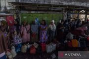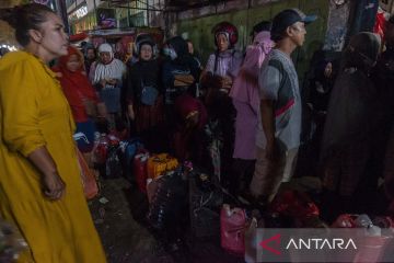 Warga antre saat membeli minyak goreng curah di Rangkasbitung, Lebak, Banten, Selasa (29/3/2022). Warga mengaku rela mengantre hingga malam hari untuk membeli minyak goreng curah karena harganya jauh lebih murah dibanding minyak goreng kemasan. ANTARA FOTO/Muhammad Bagus Khoirunas/aww.