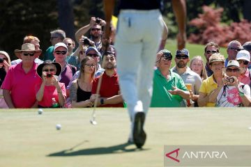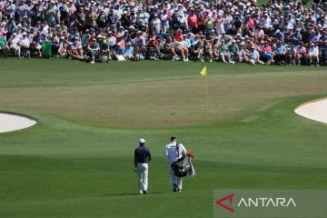Pegolf AS Tiger Woods berjalan di depan penonton di green pertama saat berlatih sebelum bertanding pada turnamen golf The Master di Augusta National Golf Club, Georgia, Amerika Serikat, Senin (4/4/2022). ANTARA FOTO/REUTERS/Jonathan Ernst/aww.