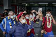 Sejumlah pemain dan ofisial tim sepak bola Atletico Madrid U-18 tiba di Terminal 3 Bandara Internasional Soekarno Hatta, Tangerang, Banten, Selasa (12/4/2022). Tim sepak bola Atletico Madrid U-18 akan bertanding pada turnamen International Youth Championship (IYC) 2021 yang diikuti oleh tim lain seperti Barcelona U-18, Indonesia All Star dan Bali United U-18 yang digelar di Jakarta Indonesia Stadium (JIS) pada 13-19 April 2022. ANTARA FOTO/Fauzan/hp.