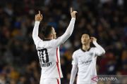 Pemain Eintracht Frankfurt Filip Kostic merayakan golnya ke gawang FC Barcelona pada pertandingan babak perempat final leg kedua Liga Eropa di Stadion Camp Nou, Barcelona, Spanyol, Kamis (14/4/2022). Frankfurt lolos ke semifinal usai menang 3-2 (4-3) dari Barcelona. ANTARA FOTO/REUTERS/Albert Gea/wsj.