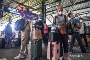 Calon penumpang kereta api tiba di Stasiun Gambir, Jakarta, Jumat (22/4/2022). Pemerintah mengimbau masyarakat untuk melakukan perjalanan mudik lebih awal untuk menghindari serta mengurai kepadatan pada puncak arus mudik Lebaran 2022. ANTARA FOTO/Hafidz Mubarak A/wsj.