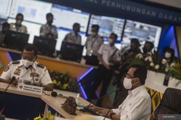 Petugas memantau pergerakan arus mudik di Posko Angkutan Lebaran Terpadu 2022, Kantor Kemenhub, Jakarta, Senin (25/4/2022). Posko Angkutan Lebaran Terpadu yang melibatkan Kemenhub dan berbagai unsur terkait tersebut untuk melakukan pemantauan, koordinasi, komunikasi dan pengendalian lalu lintas angkutan lebaran pada masa arus mudik dan arus balik Idul Fitri 1443 H tahun 2022. ANTARA FOTO/Aprillio Akbar/pras.