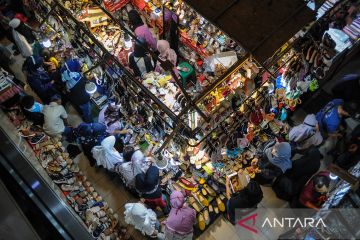 Pengunjung memadati Pasar Baru Trade Center, Bandung, Jawa Barat, Rabu (27/4/2022). Ketua Himpunan Pedagang Pasar Baru (HP2B) Iwan Suhermawan menyatakan, pada pekan keempat Ramadhan jumlah pengunjung ke Pasar Baru meningkat hingga 100 persen atau mencapai 5.000 hingga 15.000 pengunjung per hari dibandingkan dengan dua tahun terakhir yang terdampak pandemi COVID-19. ANTARA FOTO/Raisan Al Farisi/aww.
