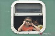 Seorang anak duduk dipangku ibunya di dalam sebuah kereta di Dhaka, Bangladesh, Jumat (29/4/2022). Menjelang Hari Raya Idul Fitri, ratusan ribu warga Dhaka berbondong-bondong keluar kota untuk merayakan lebaran bersama sanak saudara mereka di kampung halaman. ANTARA FOTO/Xinhua/Salim/wsj.