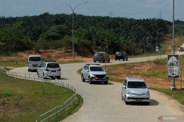 Kendaraan melintas di jalan alternatif Jambi-Sumbar, Jambi Luar Kota, Muarojambi, Jambi, Minggu (1/5/2022). Jalur alternatif yang bisa memperpendek jarak tempuh hingga 15 kilometer lebih dibanding melewati Jalan Lintas Sumatera Jambi-Sumbar itu terpantau ramai oleh kendaraan pribadi dari kedua arah. ANTARA FOTO/Wahdi Septiawan/hp.