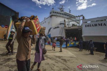 Pemudik membawa barang bawaannya saat keluar dari KM Dharma Rucitra di Pelabuhan Bandarmasih, Banjarmasin, Kalimantan Selatan, Jumat (6/5/2022). PT Pelabuhan Indonesia (Pelindo) Regional 3 Banjarmasin mencatat sebanyak 700 orang penumpang dan 113 kendaraan tiba di Pelabuhan Bandarmasih pada H+3 Lebaran dan akan terus bertambah hingga puncak arus balik yang diperkirakan terjadi pada 7-8 Mei 2022. ANTARA FOTO/Bayu Pratama S/wsj.