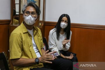 Artis Nirina Zubir (kanan) didampingi suaminya Ernest menghadiri sidang kasus mafia tanah di Pengadilan Negeri Jakarta Barat, Selasa (17/5/2022). Nirina Zubir hadir di persidangan tersebut sebagai saksi dalam kasus mafia tanah yang merugikan keluarga Nirina hingga Rp17 miliar oleh mantan asisten rumah tangga (ART). ANTARA FOTO/Asprilla Dwi Adha/aww.