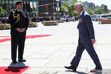 Pangeran Charles dari Inggris tiba untuk upacara menghormati veteran Kanada, pada hari kedua Tur Kerajaan 2022 Kanada, di National War Memorial di Ottawa, Ontario, Kanada, Kamis (18/5/2022). ANTARA FOTO/Reuters-Carlos Osorio/hp.