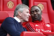 Pelatih legenda Manchester United Bryan Robson (kiri) berbincang boncang dengan Andy Cole sebelum pertandingan antara egenda Manchester United vs legenda Liverpool dalam laga Legends of the North , di Stadion Old Trafford, Manchester, Inggris, Sabtu (21/5/2022). ANTARA FOTO/Reuters-Ed Sykes/hp.